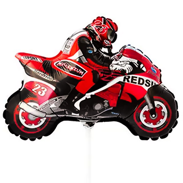 Шар фольгированный фигурный 12 /30см Мотоциклист красный, крепится с помощью розетки на палочку (в комплект не входят)
