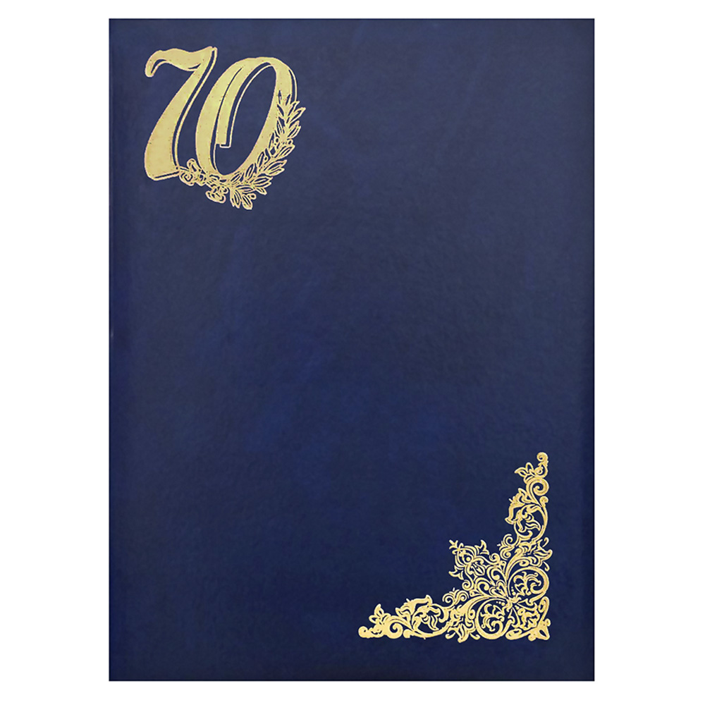 Папка адресная бумвинил с поролоном А4 70лет синяя с разводами, тиснение фольгой, Имидж