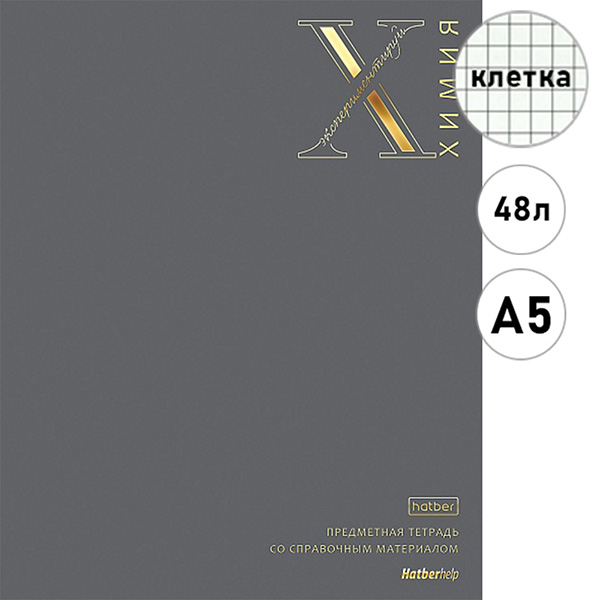 Тетрадь А5 48л Hatber Яркая палитра- Химия, клетка, со справочным материалом, офсет, на скобе, обложка- мелованный картон, ламинация soft touch, тиснение фольгой