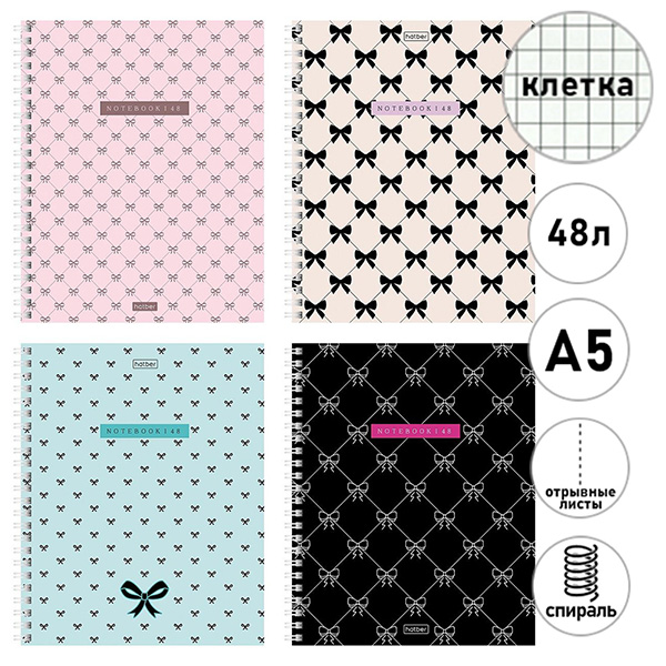 Тетрадь спираль А5 48л клетка Hatber Нежные акценты, офсет, обложка - мелованный картон, тиснение, перфорация, скругленные углы, 4 дизайна в спайке