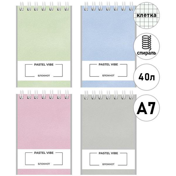 Блокнот МАЛЫЙ ФОРМАТ А7 спираль сверху 40л Проф-Пресс Пастельный дизайн, клетка, обложка - мелованный картон, 4 дизайна