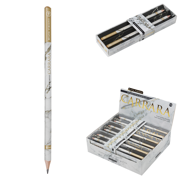 Набор карандашей ч/гр Bruno Visconti Carrara. White HB 2шт, трехгранные, деревянные, заточенные, картонный футляр c пластиковым сливом