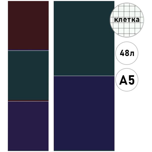 Тетрадь А5 48л клетка Проф-Пресс Однотонный дизайн- 7, на скобе, обложка - мелованный картон, ламинация soft-touch, 5 дизайнов в спайке