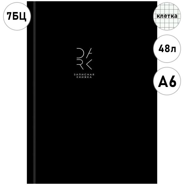 Записная книжка МАЛЫЙ ФОРМАТ А6 7БЦ 48л Проф-Пресс Дизайн в черном цвете- 1, клетка, обложка - глянцевый ламинированный картон, лен, сшивка