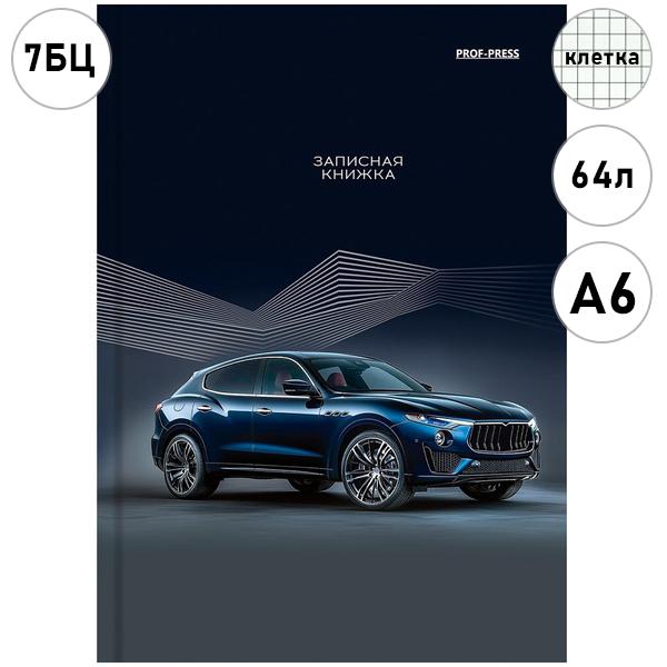 Записная книжка МАЛЫЙ ФОРМАТ А6 7БЦ 64л Проф-Пресс Красивый автомобиль- 6, клетка, обложка - глянцевый ламинированный картон, сшивка, офсет