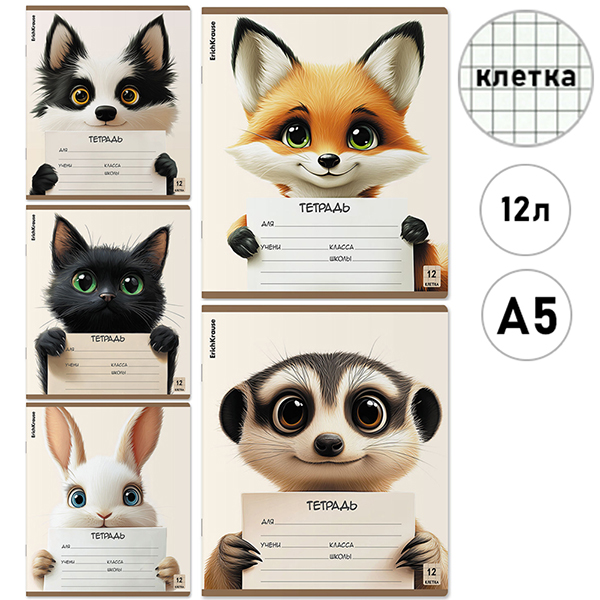 Тетрадь А5 12л клетка Erich Krause Note Friends, Mix-pack, офсет, на скобе, обложка - мелованный картон, скругленные углы, 5 дизайнов в спайке