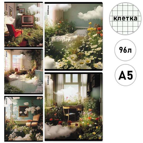 Тетрадь А5 96л клетка Erich Krause Dream Home, офсет, на скобе, обложка мелованный картон, матовая ламинация, скругленные углы, 1 дизайн в спайке, 5 дизайнов в коробке