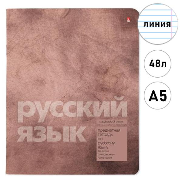 Тетрадь А5 48л Альт Stone color- Русский язык, линия, со справочным материалом, на скобе, обложка- картон, матовая ламинация, конгрев, скругленные углы