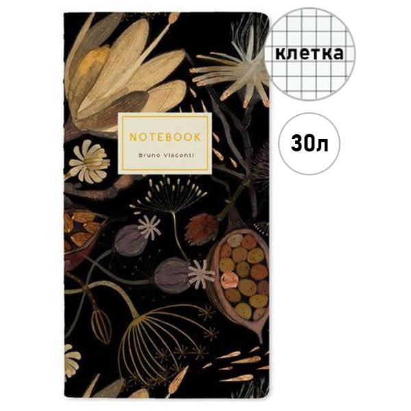 Тетрадь 85*160мм 30л клетка Bruno Visconti Flora. Ночные цветы, офсет, сшивка, обложка - мелованный картон, матовая ламинация, soft-touch, скругленные углы