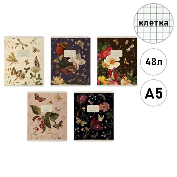 Тетрадь А5 48л Bruno Visconti Fauna. Butterfly, клетка, офсет, на скобе, обложка- мелованный картон, матовая ламинация, soft-touch, тиснение золотой фольгой, скругленные углы, 5 дизайнов