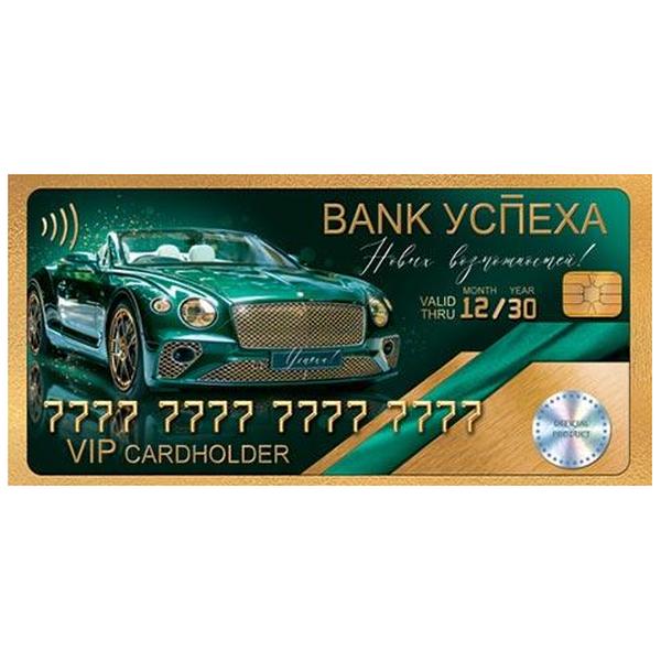 Конверт для денег Мир открыток 2-16 Мужской- Банк успеха, зеленая машина, 168*83мм, золотые блестки, рельеф, без текста