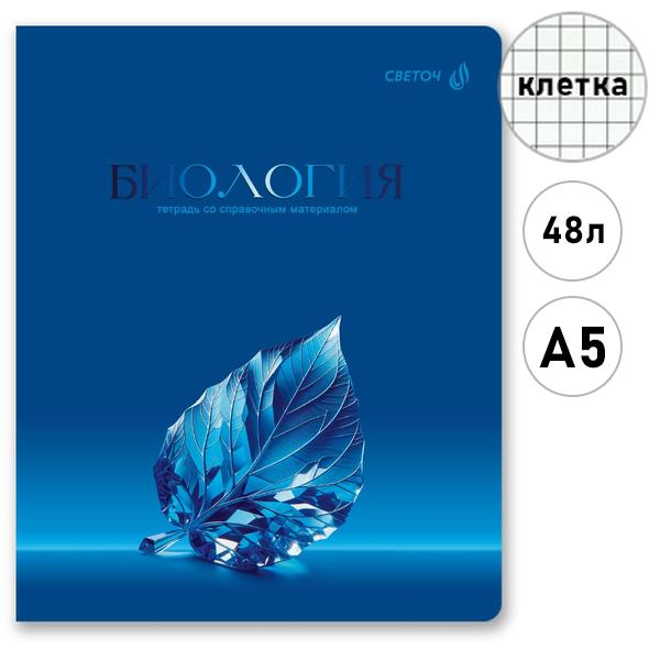 Тетрадь А5 48л Светоч Кристалл тайного- Биология, клетка, со справочным материалом, офсет, на скобе, обложка- мелованный картон, глянцевая ламинация, скругленные углы