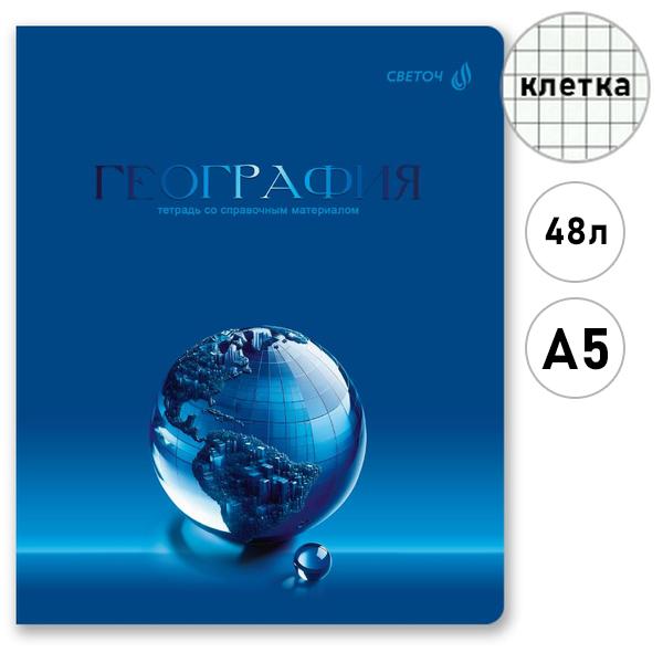 Тетрадь А5 48л Светоч Кристалл тайного- География, клетка, со справочным материалом, офсет, на скобе, обложка- мелованный картон, глянцевая ламинация, скругленные углы