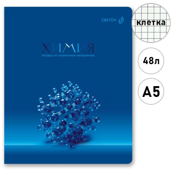 Тетрадь А5 48л Светоч Кристалл тайного- Химия, клетка, со справочным материалом, офсет, на скобе, обложка- мелованный картон, глянцевая ламинация, скругленные углы