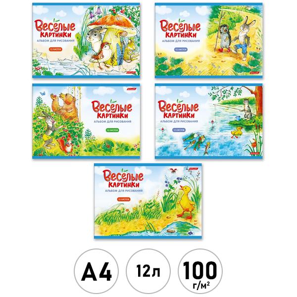 Альбом А4 12л Светоч Веселые картинки (ассорти), на скобе, обложка - мелованный картон, блок-офсет- 100г/м2, 5 дизайнов в спайке