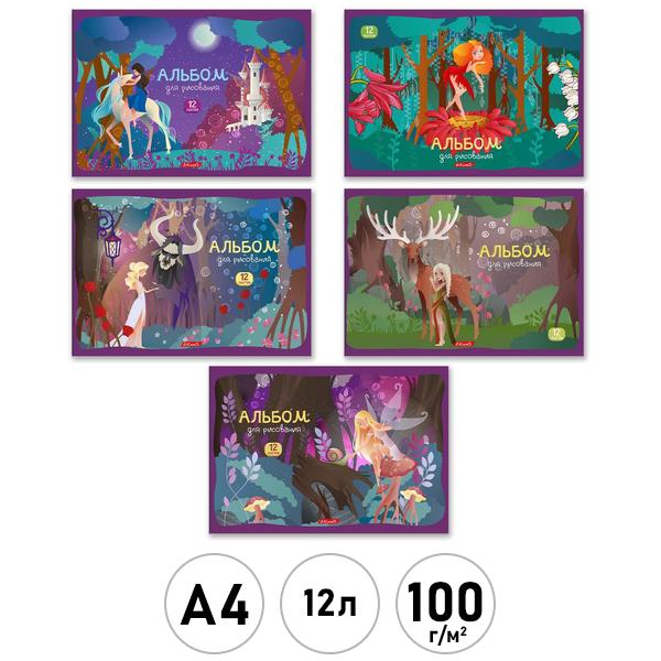 Альбом А4 12л Светоч Таинственный лес (ассорти), на скобе, обложка - мелованный картон, блок-офсет- 100г/м2, 5 дизайнов в коробке