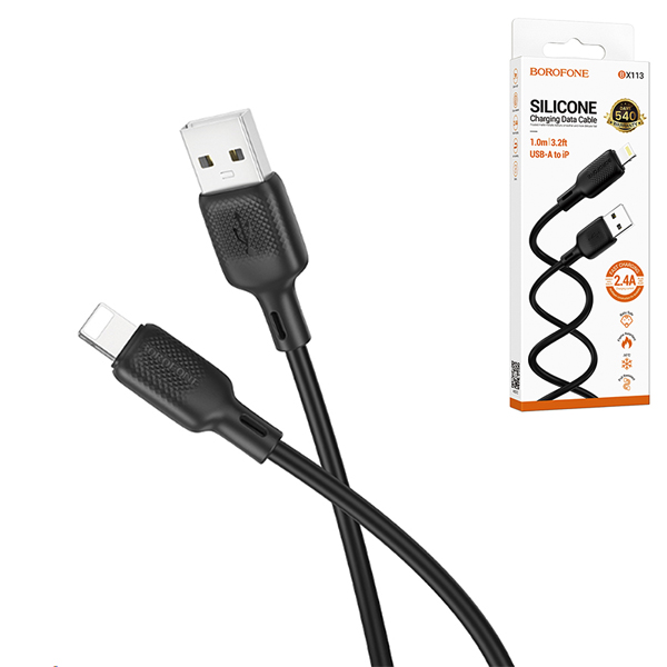 Кабель сетевой USB - Lightning Borofone BX113 Lenny черный, круглый, 1м, 2,4А, силикон