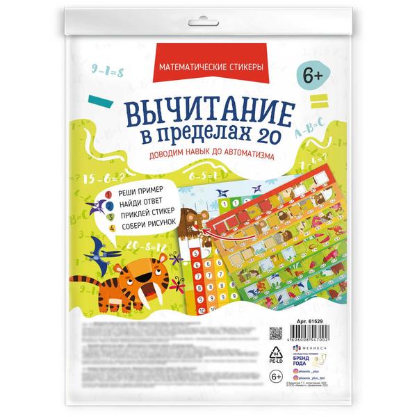 Обучающее пособие Феникс 200*260мм 1 лист Математические стикеры. Вычитание в пределах 20, обложка - мелованная бумага, пакет, европодвес