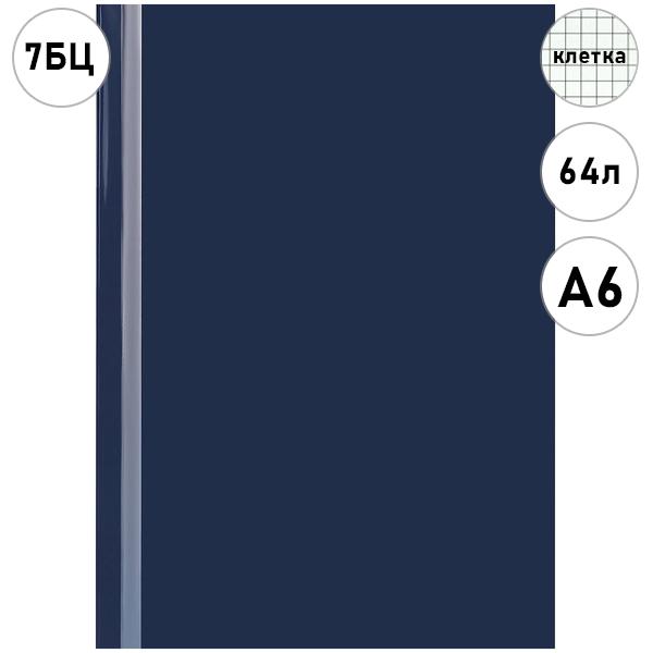 Записная книжка МАЛЫЙ ФОРМАТ А6 7БЦ 64л Проф-Пресс Синий, клетка, обложка - глянцевый ламинированный картон, сшивка, офсет