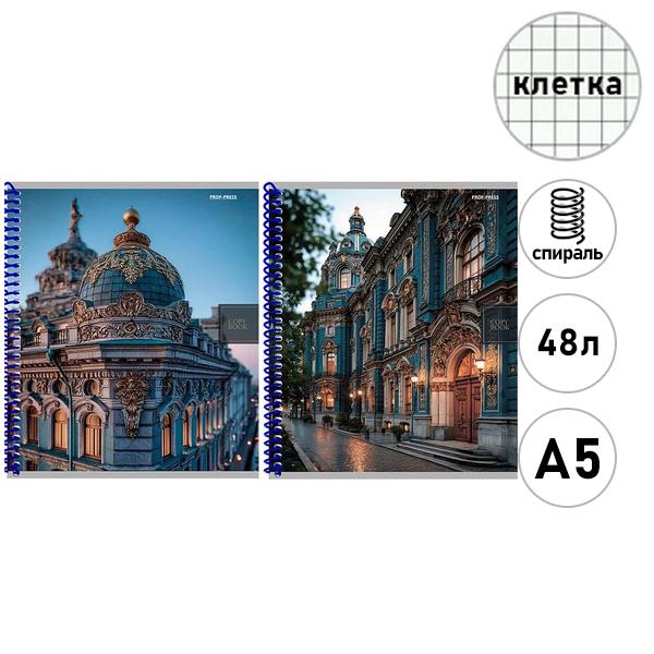 Тетрадь спираль А5 48л клетка Проф-Пресс Городская архитектура- 5, офсет, обложка - мелованный картон, 2 дизайна в спайке