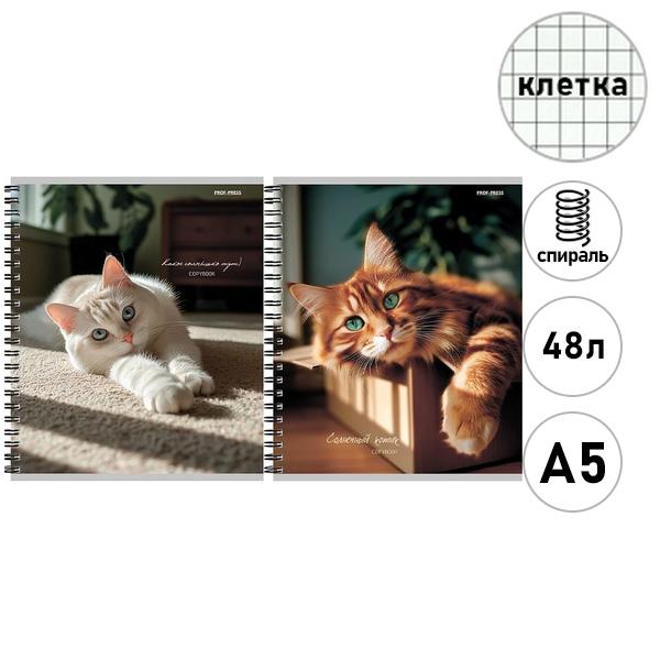 Тетрадь спираль А5 48л клетка Проф-Пресс Милые коты- 2, офсет, обложка - мелованный картон, 2 дизайна в спайке