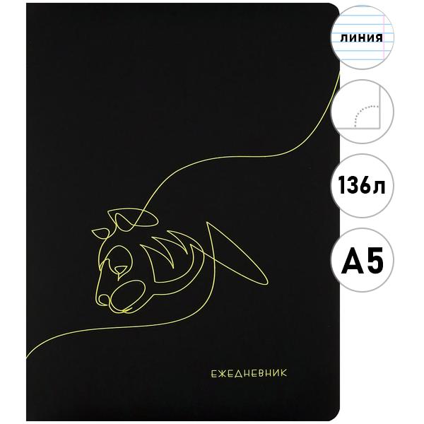 Ежедневник недатированный А5 искусственная кожа Проф-Пресс 136л Minimal neon- Тигр, линия, поролон, тонированный блок, soft-touch, печать в 1 краску, ляссе, цветной срез, перфорация углов, скругленне углы, справочная информация