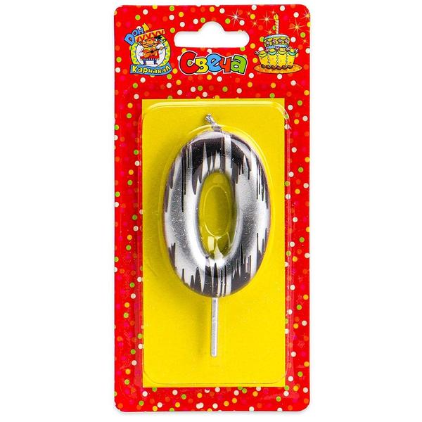 Свеча для торта цифра Миленд Шебби шик 0, серебряная, 14*6,5*1см, картонный блистер, европодвес