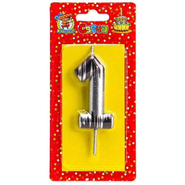 Свеча для торта цифра Миленд Шебби шик 1, серебряная, 17,5*7,1*0,9см, картонный блистер, европодвес