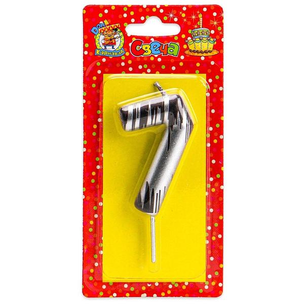 Свеча для торта цифра Миленд Шебби шик 7, серебряная, 14*6,5*1см, картонный блистер, европодвес