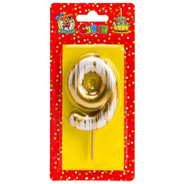 Свеча для торта цифра Миленд Шебби шик 9, золотая, 14*6,5*1см, картонный блистер, европодвес