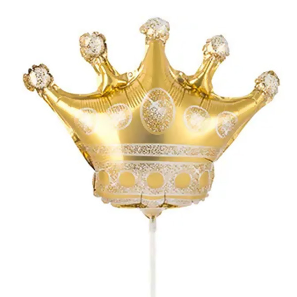 Шар фольгированный фигурный 15 /38см Корона золотая на палочке, крепится с помощью розетки на палочку