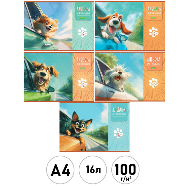 Альбом А4 16л Hatber Навстречу ветру (ассорти), на скобе, обложка- плотная офсетная бумага, блок-офсет- 100г/м2, 5 дизайнов в спайке