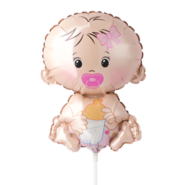 Шар фольгированный фигурный 13 /33см Малыш девочка, крепится с помощью розетки на палочку (в комплект не входят)