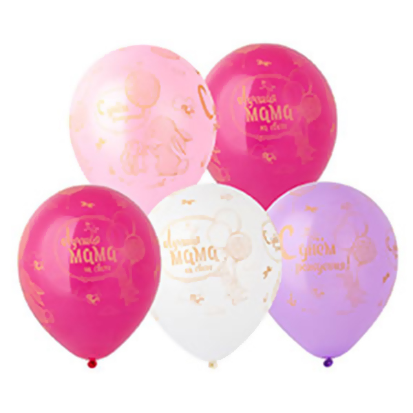 Шар латексный шелкография 14 /36см С днем рождения, мама, ассорти 4 цвета, 3 дизайна