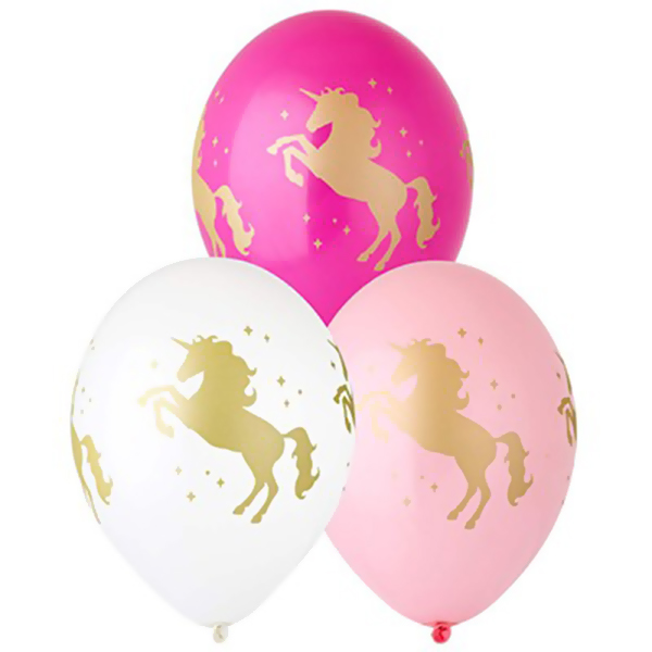 Шар латексный шелкография 14 /36см Единорог, ассорти 3 цвета, 1 дизайн