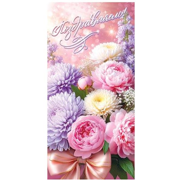 Конверт для денег Мир открыток 4-15 Поздравляем! Нежные цветы, 83*168мм, без отделки, без текста
