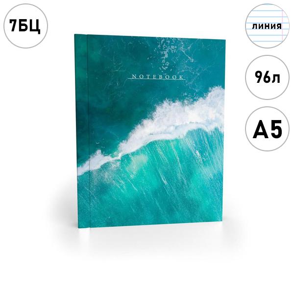 Записная книжка А5 7БЦ 96л Академия Групп Изумрудная волна, линия, обложка - матовый ламинированный картон, офсет, сшивка