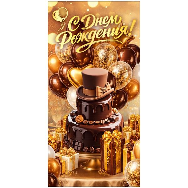Конверт для денег Открытая планета 410 Мужской- С Днем рождения! Торт, подарки, воздушные шары, 84*168мм, без отделки, текст