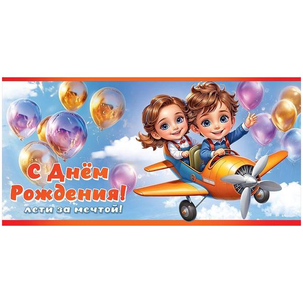 Конверт для денег Праздник 410 Детский- С Днём рождения! Лети за мечтой!, 168*84мм, глянцевый УФ-лак, текст