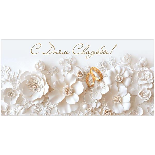 Конверт для денег Праздник 425 Свадьба- С Днем Свадьбы! Цветочный барельеф, кольца, 168*84мм, радужные блестки в лаке, текст