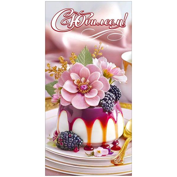 Конверт для денег Праздник 410 С Юбилеем! Пироженое, цветы, ягоды, 84*168мм, УФ-лак глянцевый, текст